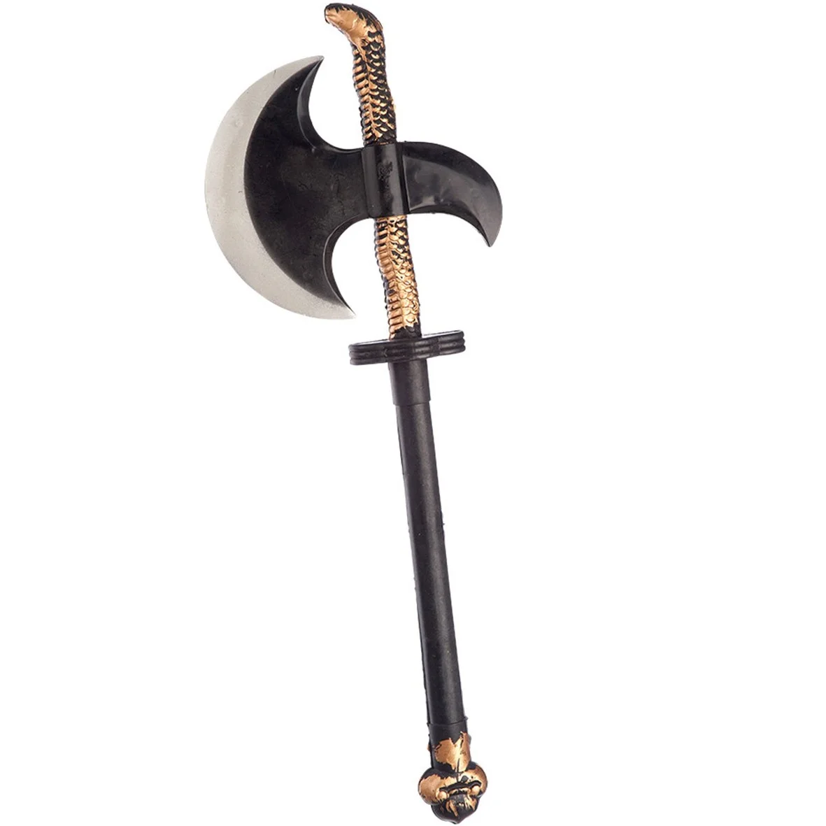 Ascia anticata in plastica nera e bronzo con lama argentata. Adatta a tanti travestimenti di tipo storico, per feste o rievocazioni in particolare medievali.