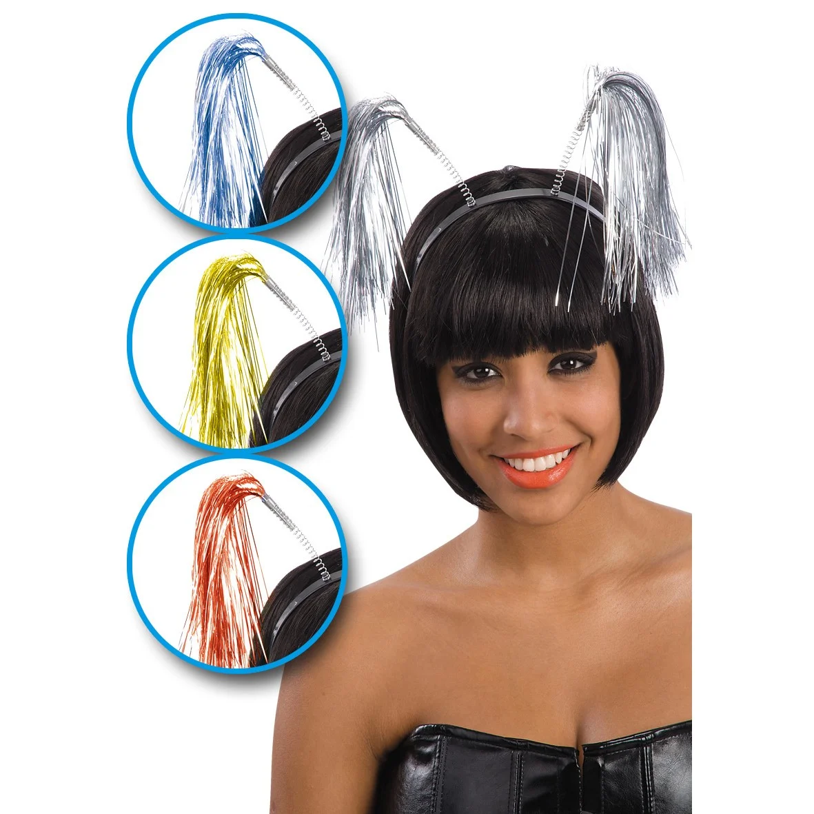 Cerchietti con fili metallizzati di colore oro e blu, accessorio simpatico e scintillante per la tua serata di Capodanno o per altre occasioni.