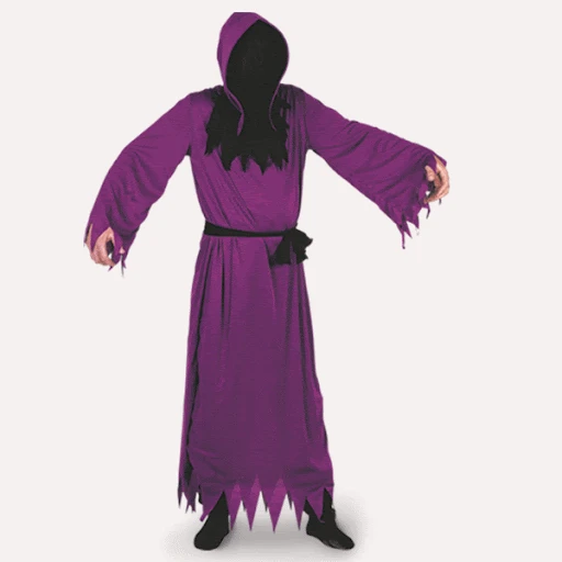Costume viola per un Halloween spaventoso. Perfetto con una maschera in lattice da scheletro o mostro.