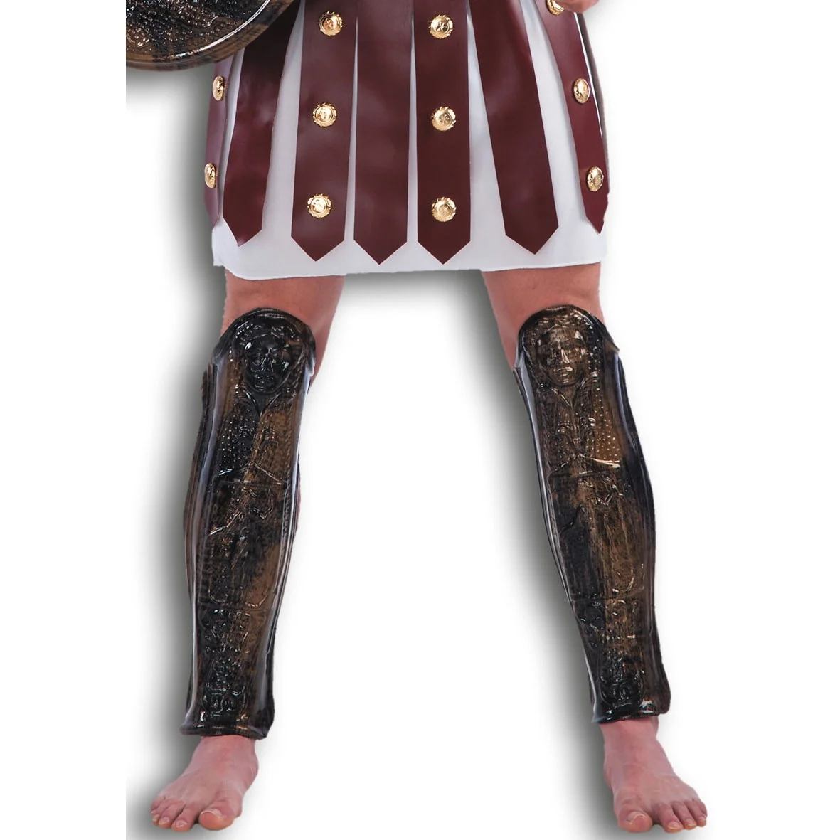 Gambali da romano in confezione da due pezzi, in plastica serigrafata color oro e perfetti per far parte di una legione romana.