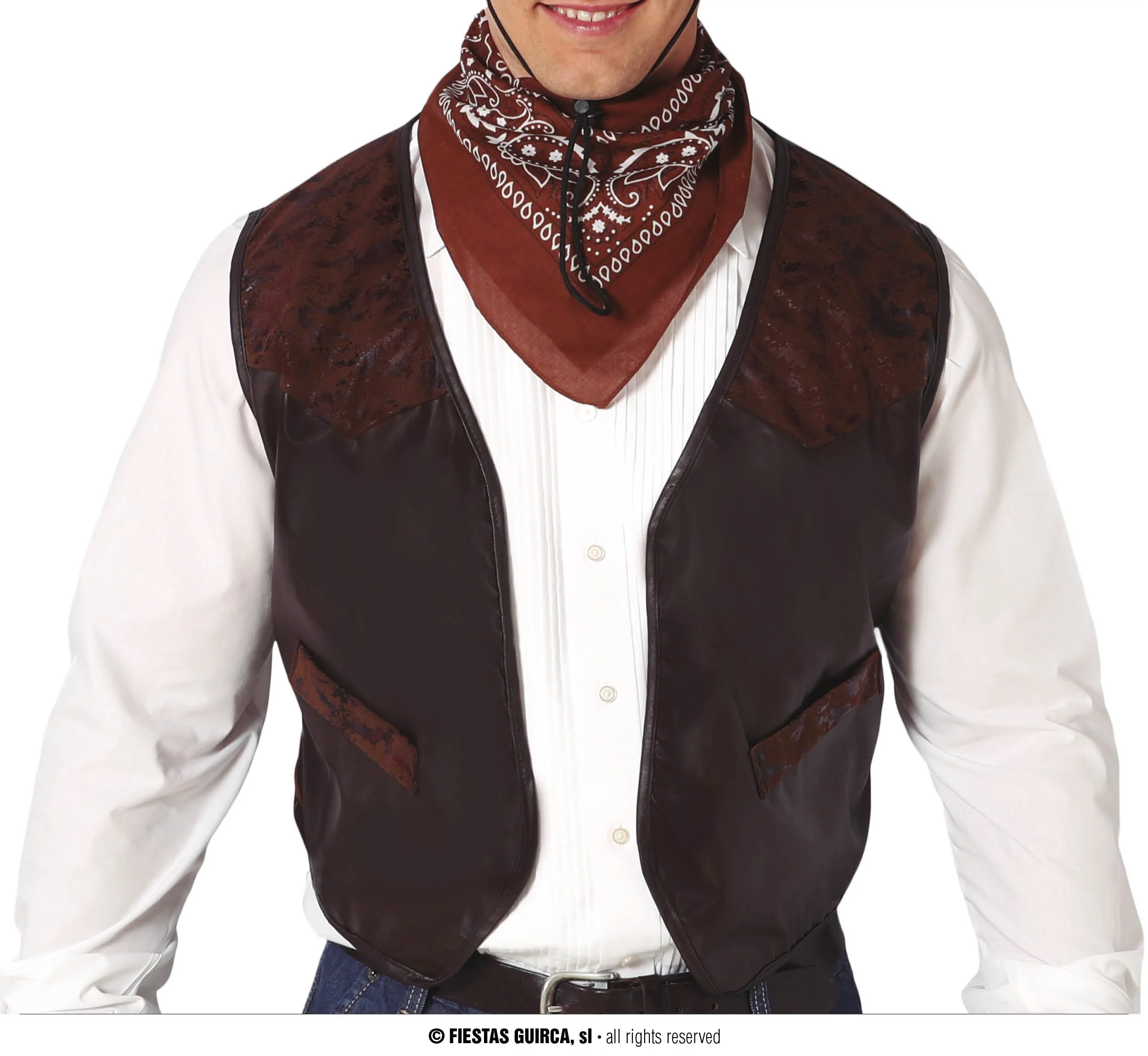 Gilet da Cowboy in similpelle di colore marrone (taglia unica).