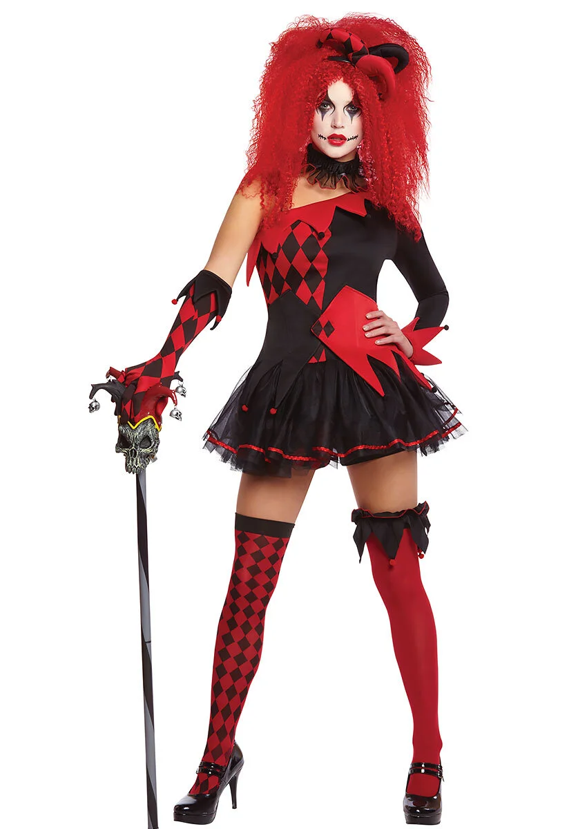 Crea scompiglio in giro con questo vestito da Giullarina! Grazie a questo look da Giullare Arlecchino sarai sexy e minacciosa al tempo stesso.