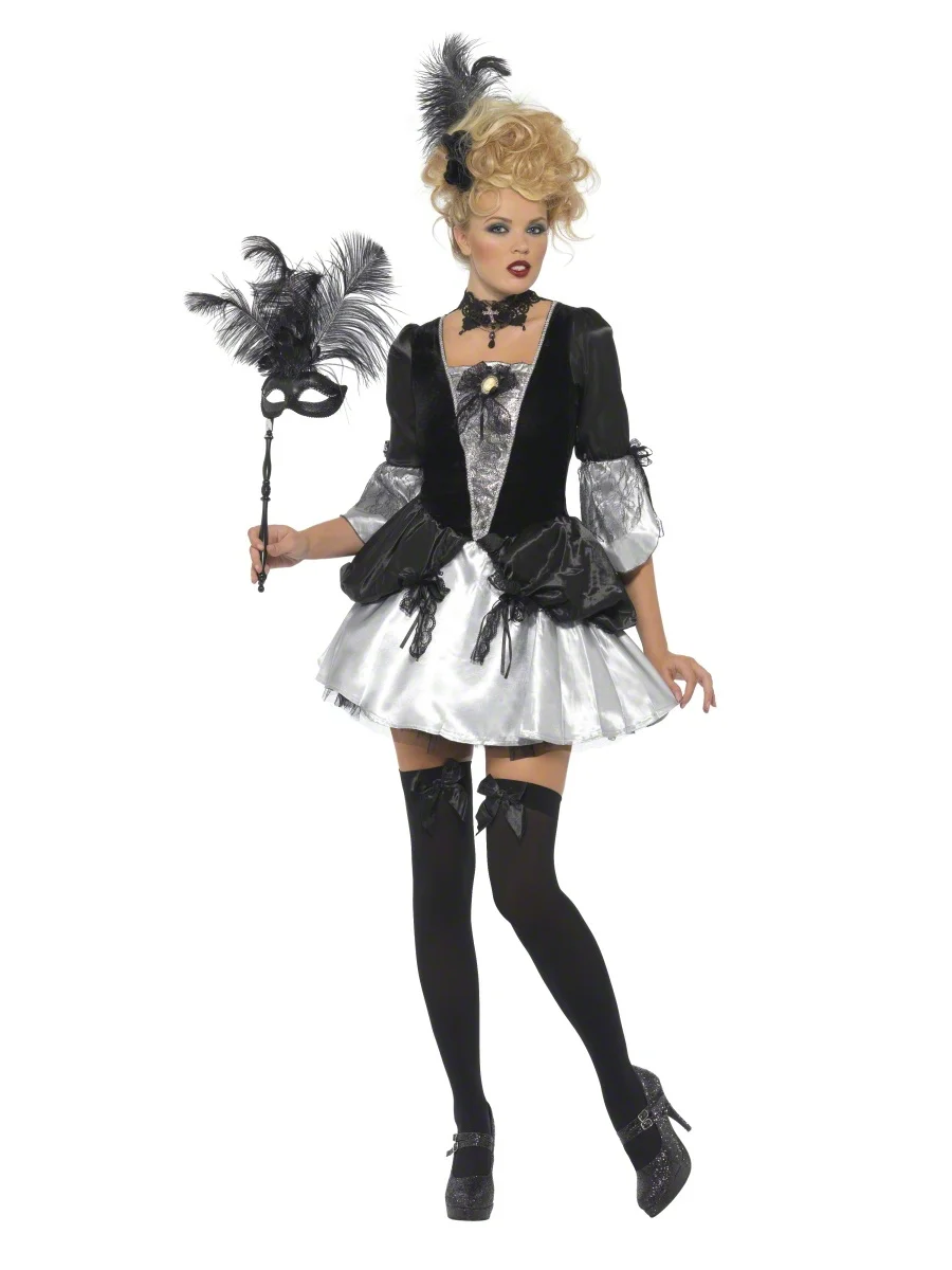 Questo travestimento barocco per donna è composto da un magnifico abito che rievoca l’abbigliamento femminile dell’epoca, rivisitandolo in chiave sensuale. La parte superiore dell’abito è interamente foderata con una chiusura lampo sulla schiena. Questo costume da Dama Barocca è perfetto per un Carnevale veneziano o per una festa a tema.