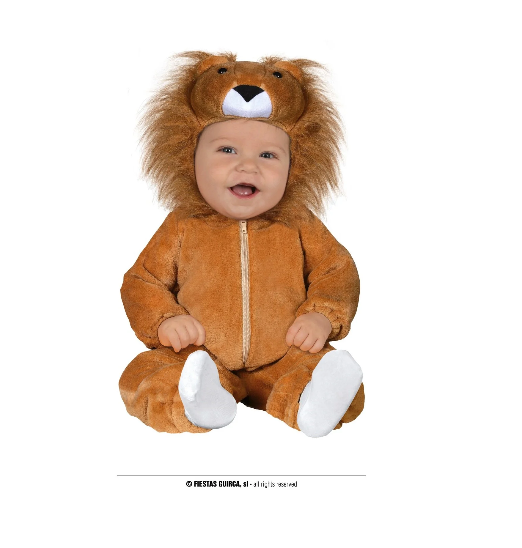 Costume da Leoncino in peluche composta da tuta con cappuccio e testa di leone.