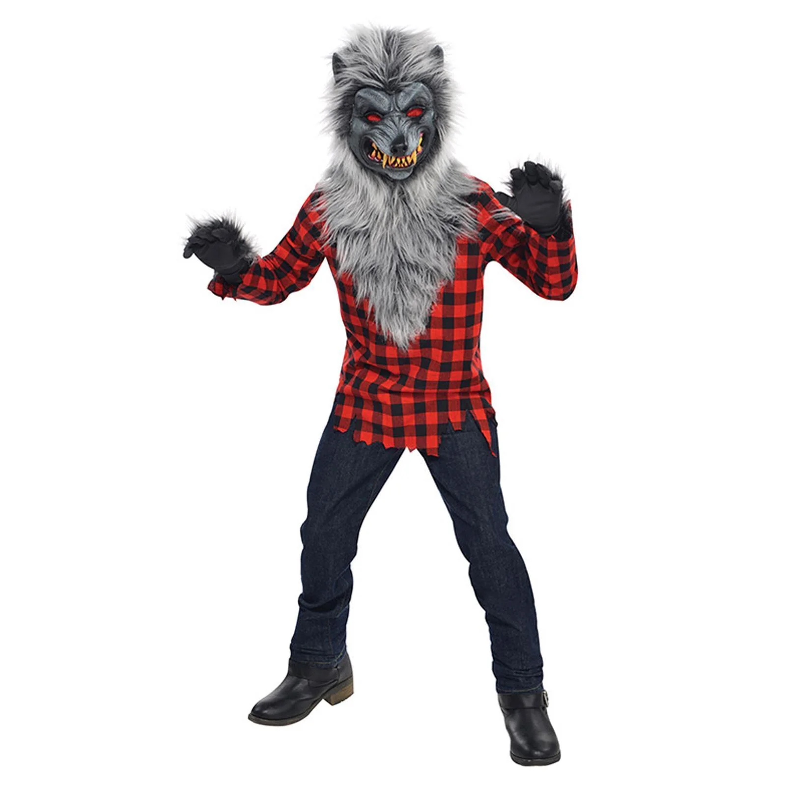 Indossa questo costume ad Halloween e vediamo se riuscirai a smettere di ululare alla luna. Mostra a tutti le tue qualità da uomo lupo, indossando questa maschera pelosa con denti gialli affilati e occhi rossi (rete a buchi). La camicia scozzese con pelo attaccato e i guanti altrettanto pelosi completano il look da licantropo. Non farti trovare impreparato alla prossima luna piena! Indossa il costume questo costume.