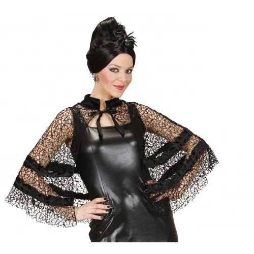 Mantellina semplice da indossare di colore nero. E’ tutta traforata e realizzata in poliestere.