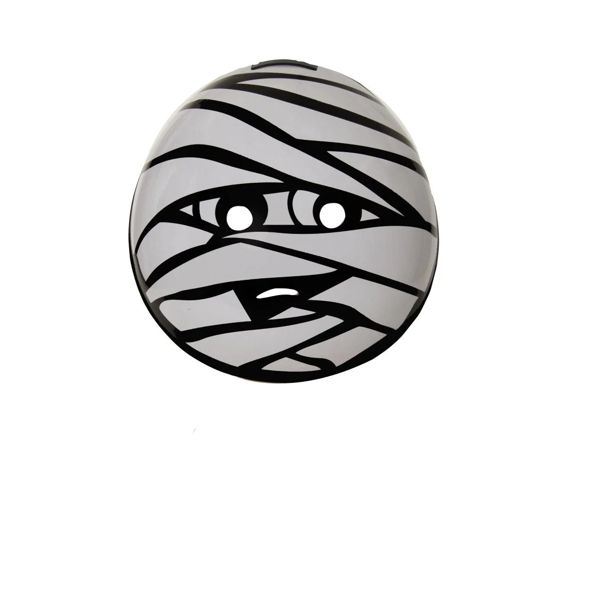 Maschera tonda bianca e nera in plastica morbida corredata da cerchietto, con stampa mummia.