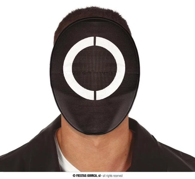 Maschera Squid Game in plastica con cerchio.