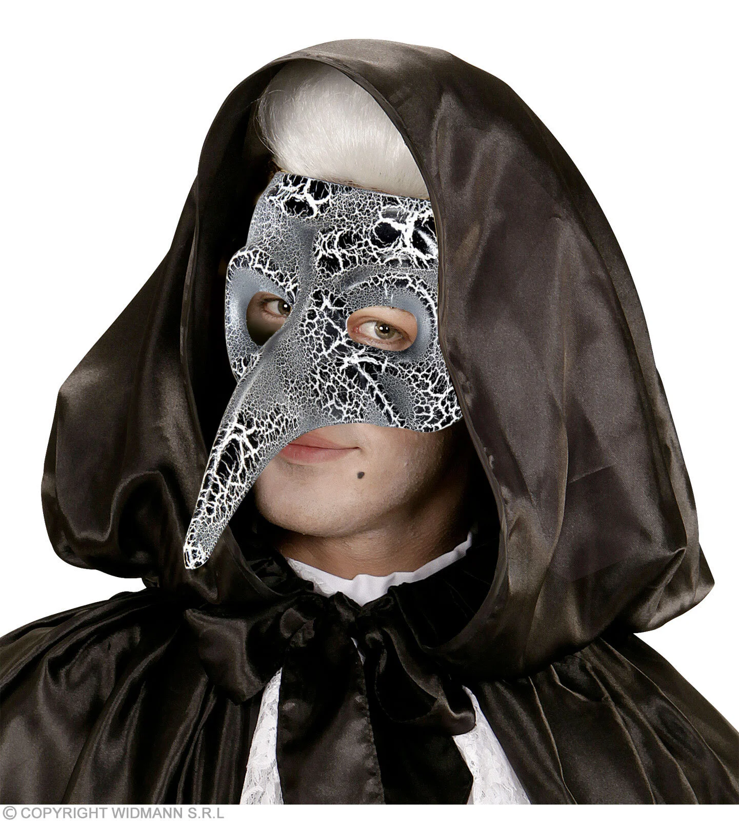 Maschera Veneziana Nasone bicolore; ogni maschera è diversa dall’altra in base al “bagno di colore”. L’articolo è in plastica rigida e si allaccia con un nastrino in raso. Perfetta per il Carnevale Veneziano ma anche per Halloween: è una maschera molto misteriosa molto d’effetto.