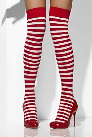 Bellissime parigine a righe bianche e rosse. Perfette per un travestimento natalizio: per Mamma Natale o per Elfo.