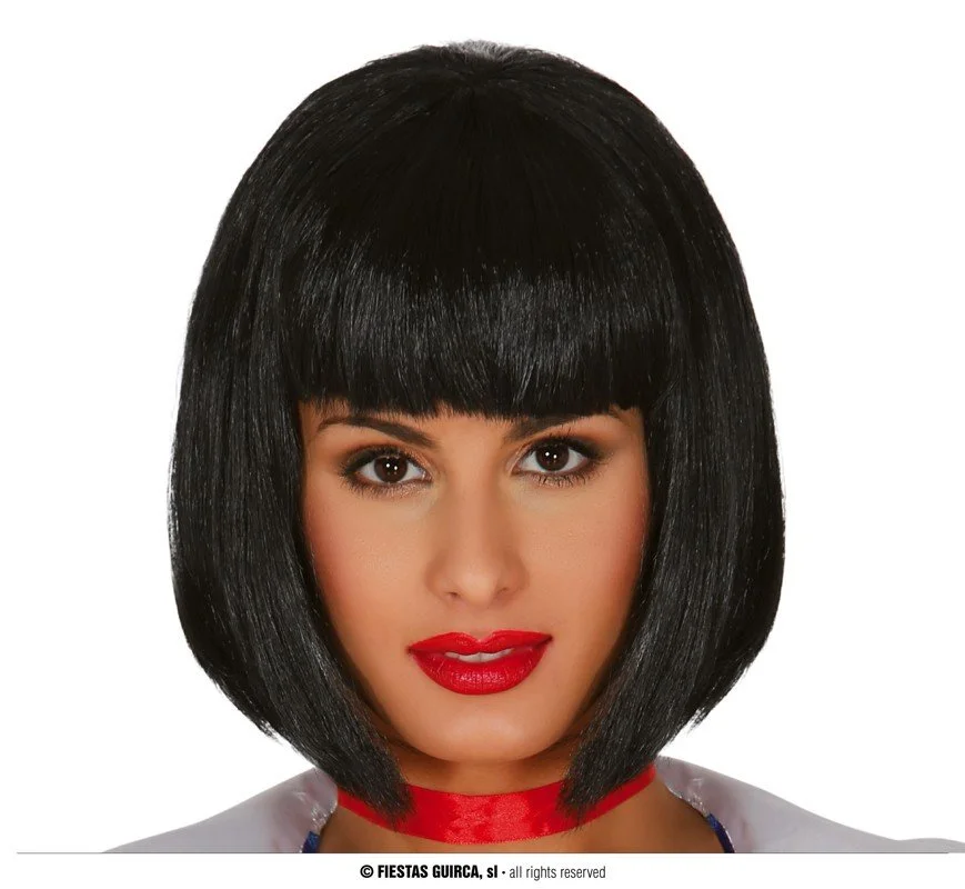 Parrucca a caschetto di colore nero. Perfetta per moltissimi travestimenti: anni ‘20, casa di carta e molto altro.