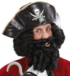 Parrucca adatta per un travestimento da Pirata e da Re. Include: parrucca, baffi e barba.