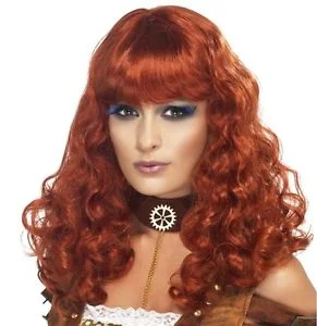 Parrucca in perfetto stile Steampunk con tanti bei ricci e riflessi brillanti che le conferiscono un aspetto molto glamour. I capelli arrivano all’altezza delle spalle e il taglio è rifinito da una frangia liscia. Parrucca perfetta per una serata in maschera o per completare un costume di Halloween.