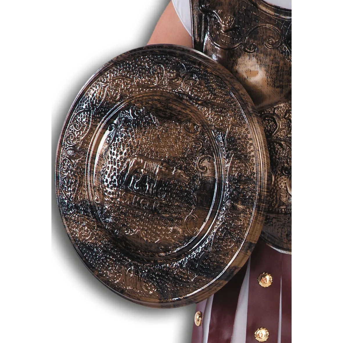 Scudo romano in plastica serigrafata color oro per rappresentare un soldato romano o un gladiatore.