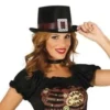 Cappello tuba in velluto nero con fibbia dorata ideale per feste a tema e travestimenti horror.