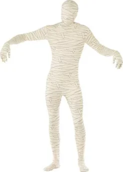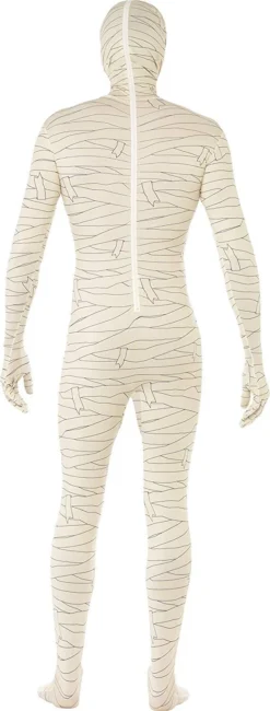 Divertente costume seconda pelle, tuta da mummia con cappuccio apribile.