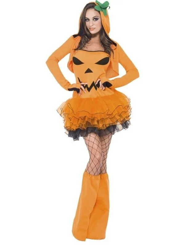 Costume da zucca sexy per donna, perfetto per la sera di Halloween.